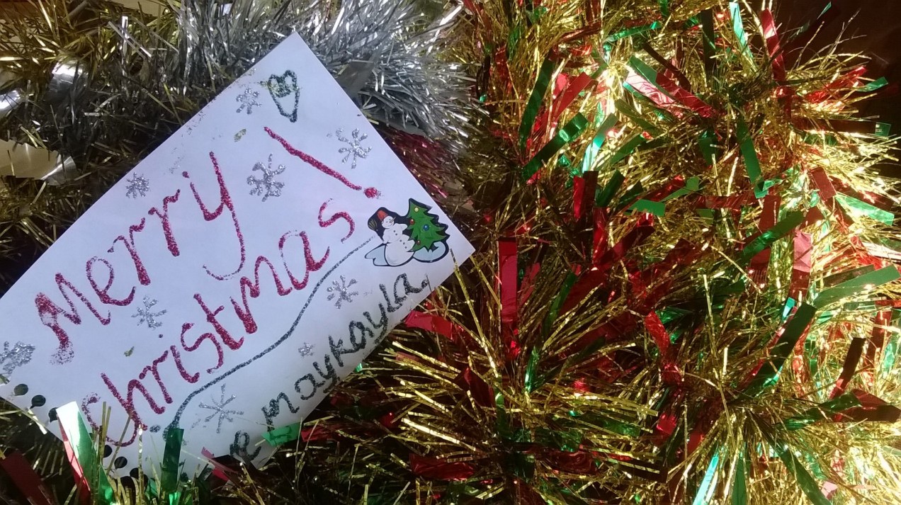 This is a lovely little note left by Maykayla on Xmas day. Created with her Xmas present I guess (I didn’t see it until after she went home. I cannot believe that it never occurred to me to take photos on the day. I am still kicking myself that I didn’t think to line the family up in Mortlake for photos either!