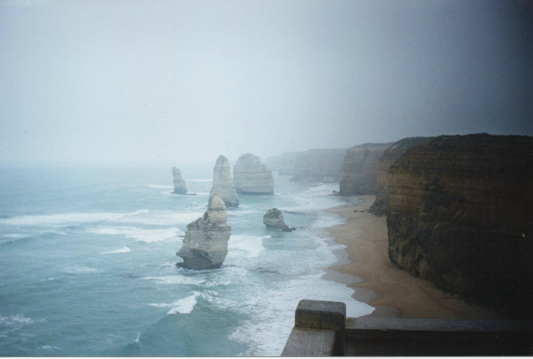 This second one is what is left of the Twelve Apostles, along The Great Ocean Road, near Port Campbell, Victoria. We called in, on the way home from the Port Fairy Folk Festival, and joined scores of tourists on the viewing platforms. In 2005, eight years after this photo, the apostle in the foreground collapsed.