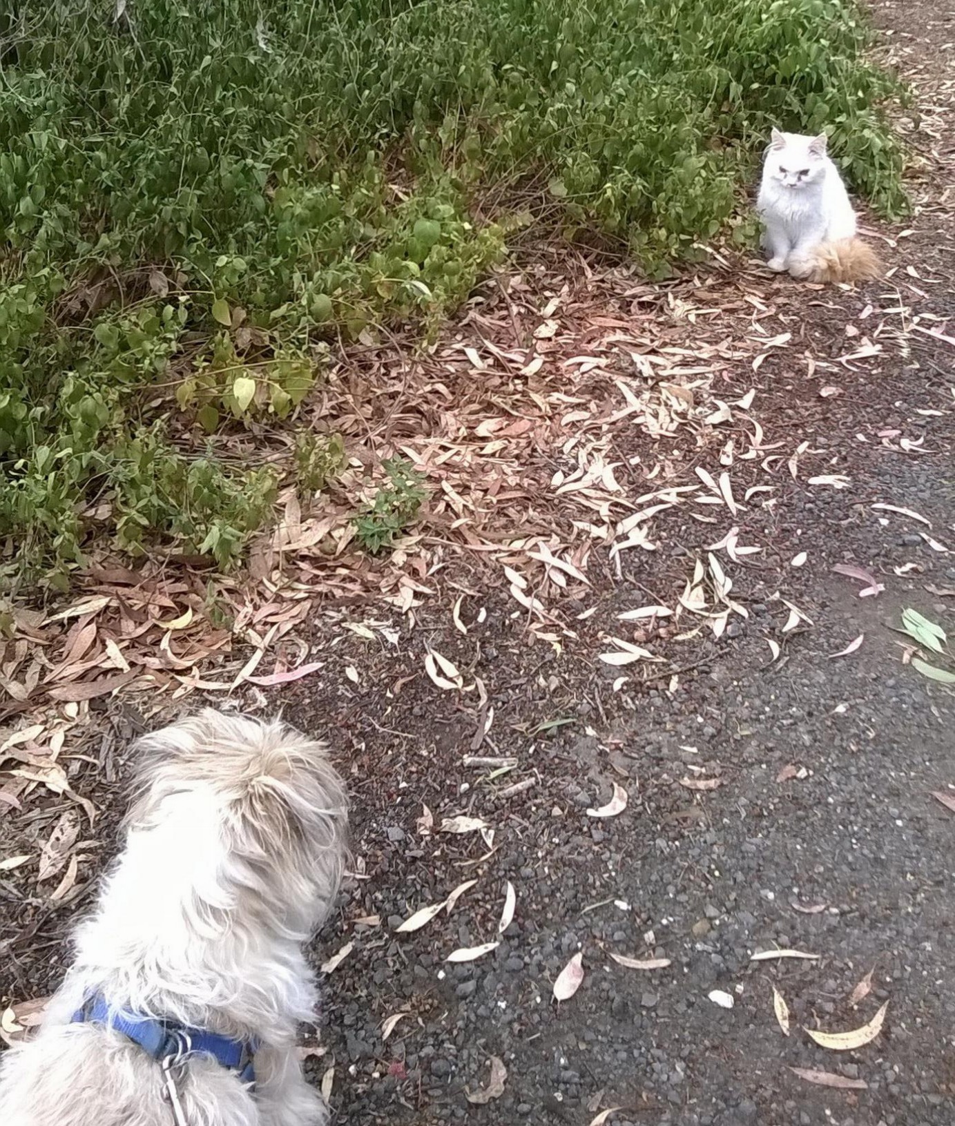 The cat doesn’t seem at least fussed. Wouldn’t turn my back on it though. Used to be a cat (Siamese) down the road, used to stalk anyone that went past. Even followed me up the street when I was walking our old Shepherd, and into our yard.