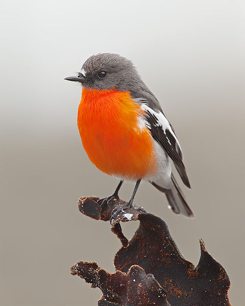 Flame Robin (Petroica phoenicea), Eaglehawk Neck, Tasmania. 4/09/2013 By Tim Collins (Own work) [CC BY-SA 3.0 (http://creativecommons.org/licenses/by-sa/3.0)%5D, via Wikimedia Commons