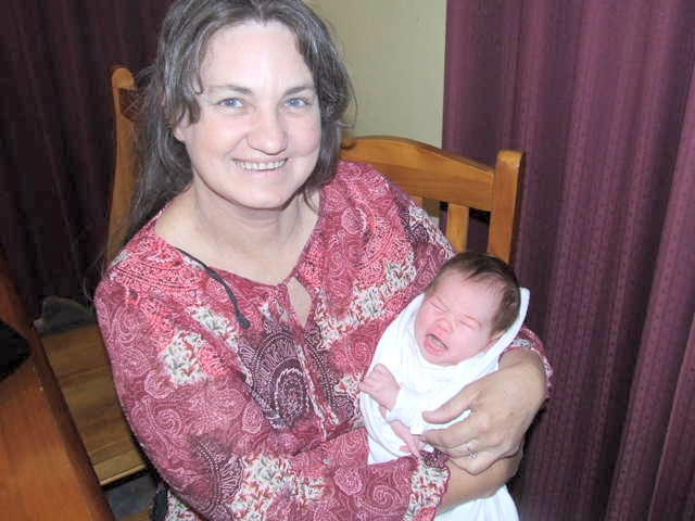 I’d probably been walking around all day with the hanger loop hanging out the neckline of my blouse. Little grand-daughter was barely a week old.