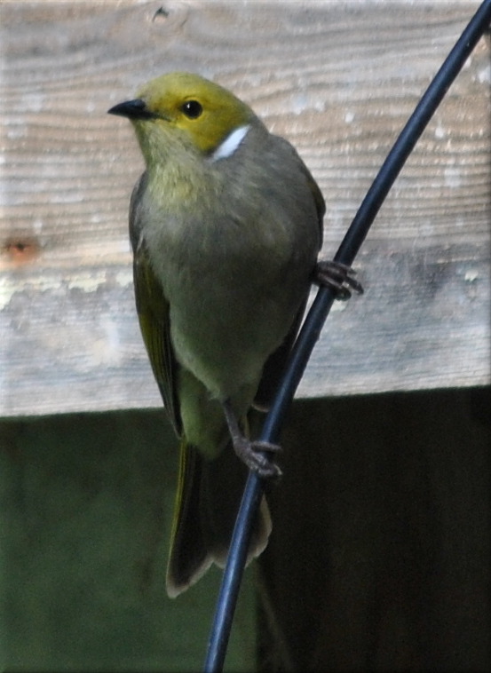 I got the bird book out. Nope, no such variation on the New Holland Honeyeater page. I saw it again up the back yard and I wondered how it could get paint, or something, on its head like that.