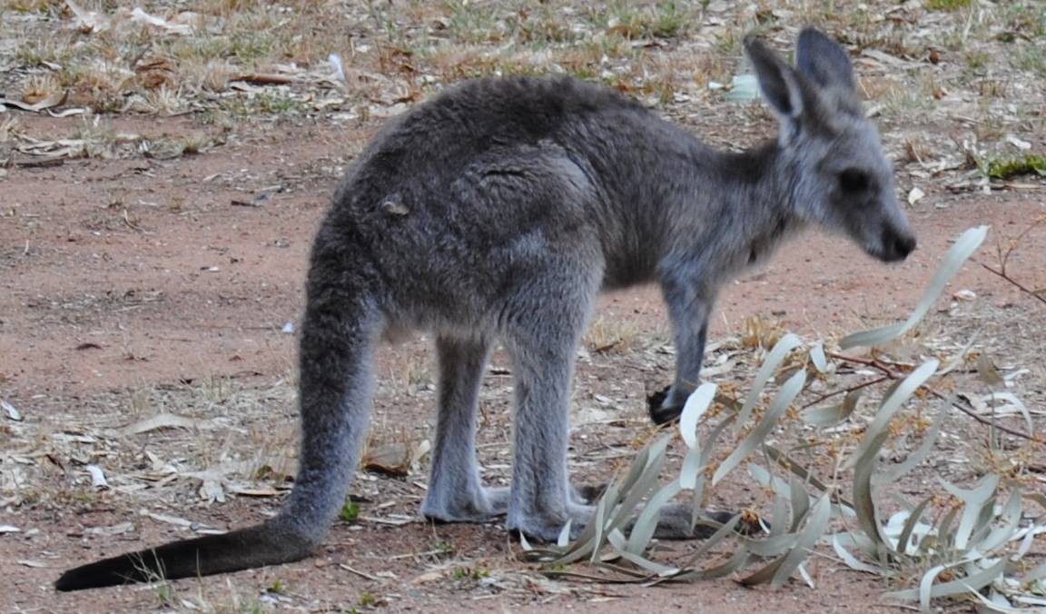 I’ve mentioned before how, on dull days, the kangaroos stay nearer the houses for longer. This morning, the sun came out and caught them by surprise. One of the gates is shut, and these fellows prefer to go around the long way instead of jumping fences.