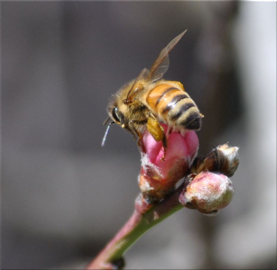Honeybee in peach blossom, earlier today. (Nikon D3000) Hope you’re having a great weekend. Stay safe. 🙂 Like Loading... Bees & BugsThe peach is flowering Image